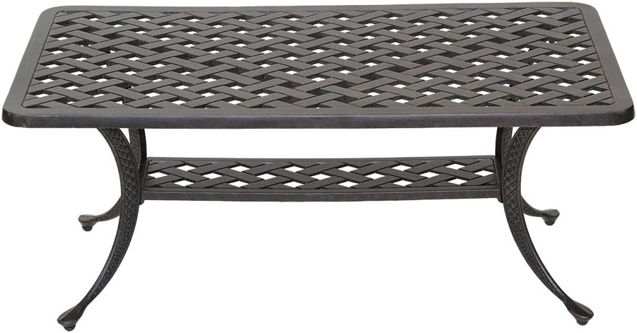 The ella wrought aluminum coffee table features interlocking aluminum ovals and a superstore 5 layer composite tabletop. This aluminum coffee table is tough yet elegant, with a silky powder coating that's impervious to rust and uv rays. Festival depot patio table rattan woven wicker coffee table with aluminum tabletop and all weather outdoor furniture for backyard porch garden (u shaped leg). Round out your outdoor seating ensemble with a coffee table that is sure to fill your patio space with style. Enjoy your patio or backyard leisure time with the strong and durable shore outdoor aluminum coffee table. It's cast in a weave pattern that looks open but is close enough to keep glasses and plates from tipping. This aluminum coffee table catches the eye with its honed curved edges and contrasting surface finishes. Trying to find the perfect outdoor coffee table? This outdoor christopher knight home cape coral aluminum coffee table with glass top is a stylish addition to any patio décor you currently have. Rh members enjoy 25% savings and complimentary design services. Free delivery for many products! Made from top quality aluminum and glass, this table is sure to impress. This round outdoor coffee table is made of cast aluminum material known for durability despite its lightness.