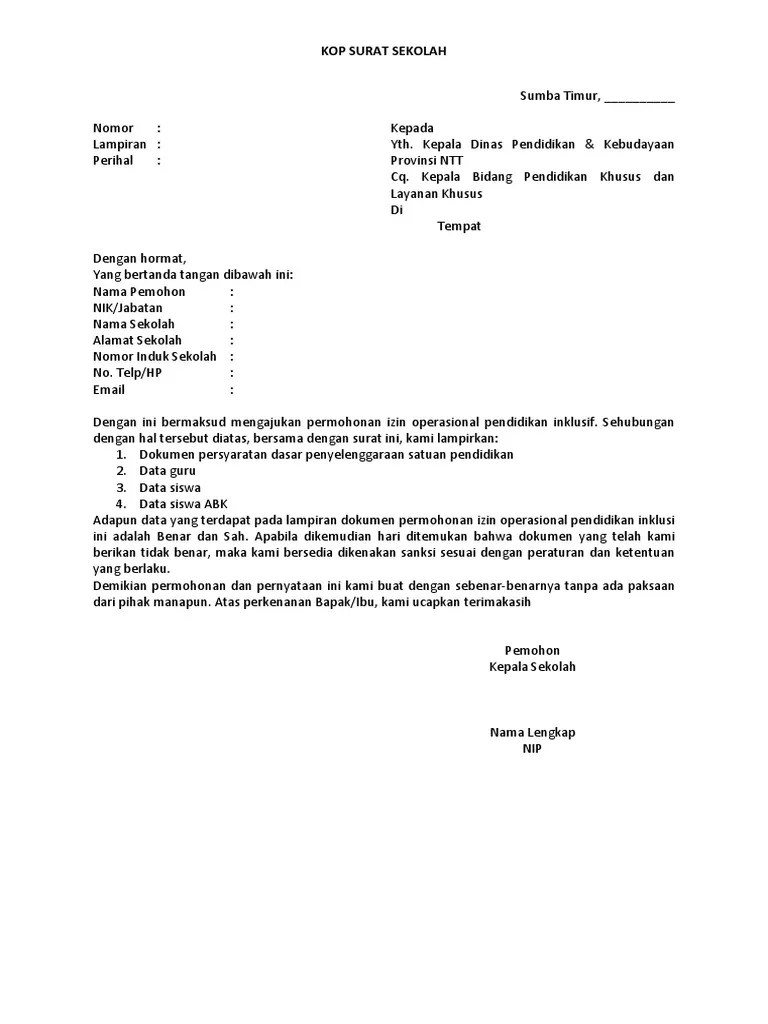 05 july 2021 sampai 02 august 2021. Contoh surat permohonan izin operasional sekolah dasar. Surat izin operasional sekolah merupakan surat yang diberikan olehdari dinas ke sekolah yang mengajukan. Didalam ikut serta membantu pemerintah untuk menuntaskan program pendidikan wajib belajar pendidikan dasar 9 tahun bersama ini kami sampaikan 1 satu berkas permohonan ijin operasional sebagai kebutuhan mendasar legal formal proses kegiatan belajar mengajar di. Setiap surat memiliki bentuk dan tujuan yang berbeda beda terlebih antara surat perseorangan dengan surat.